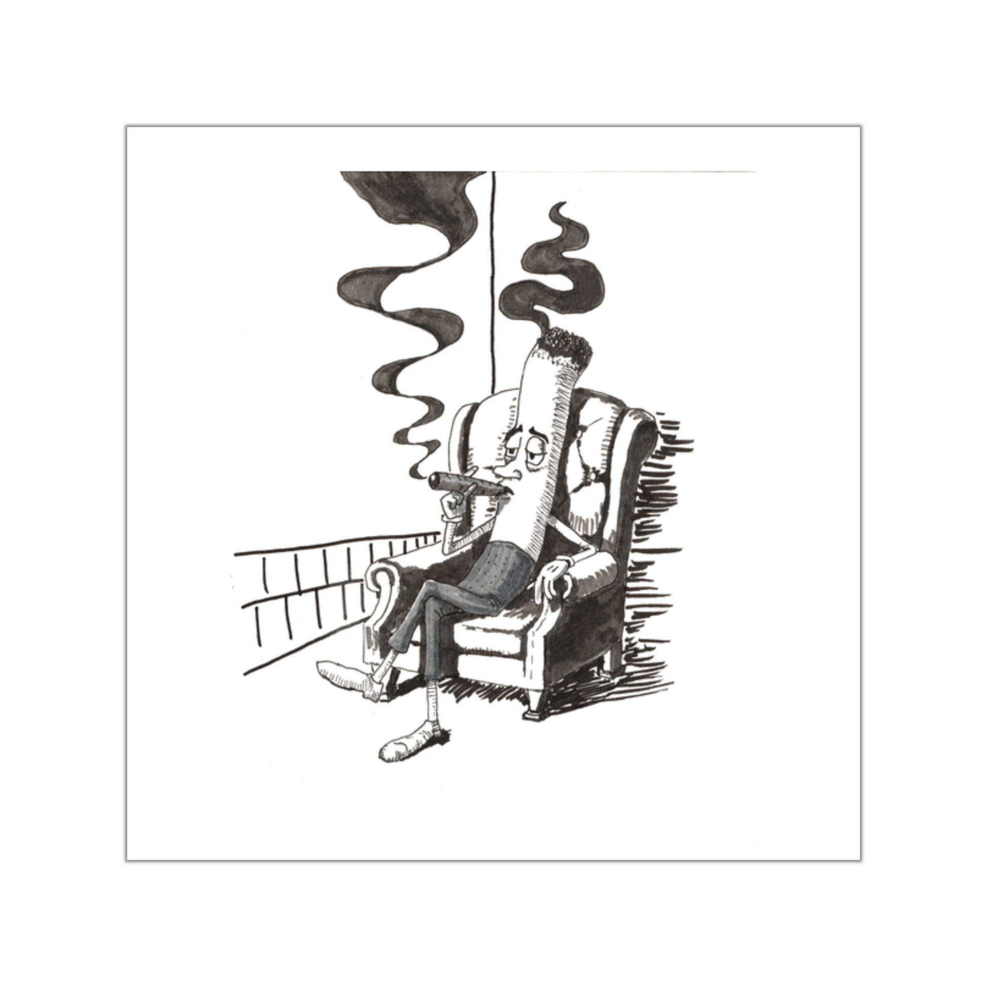 This cigarette is smoking a cigar :) On the back is the sticky part.