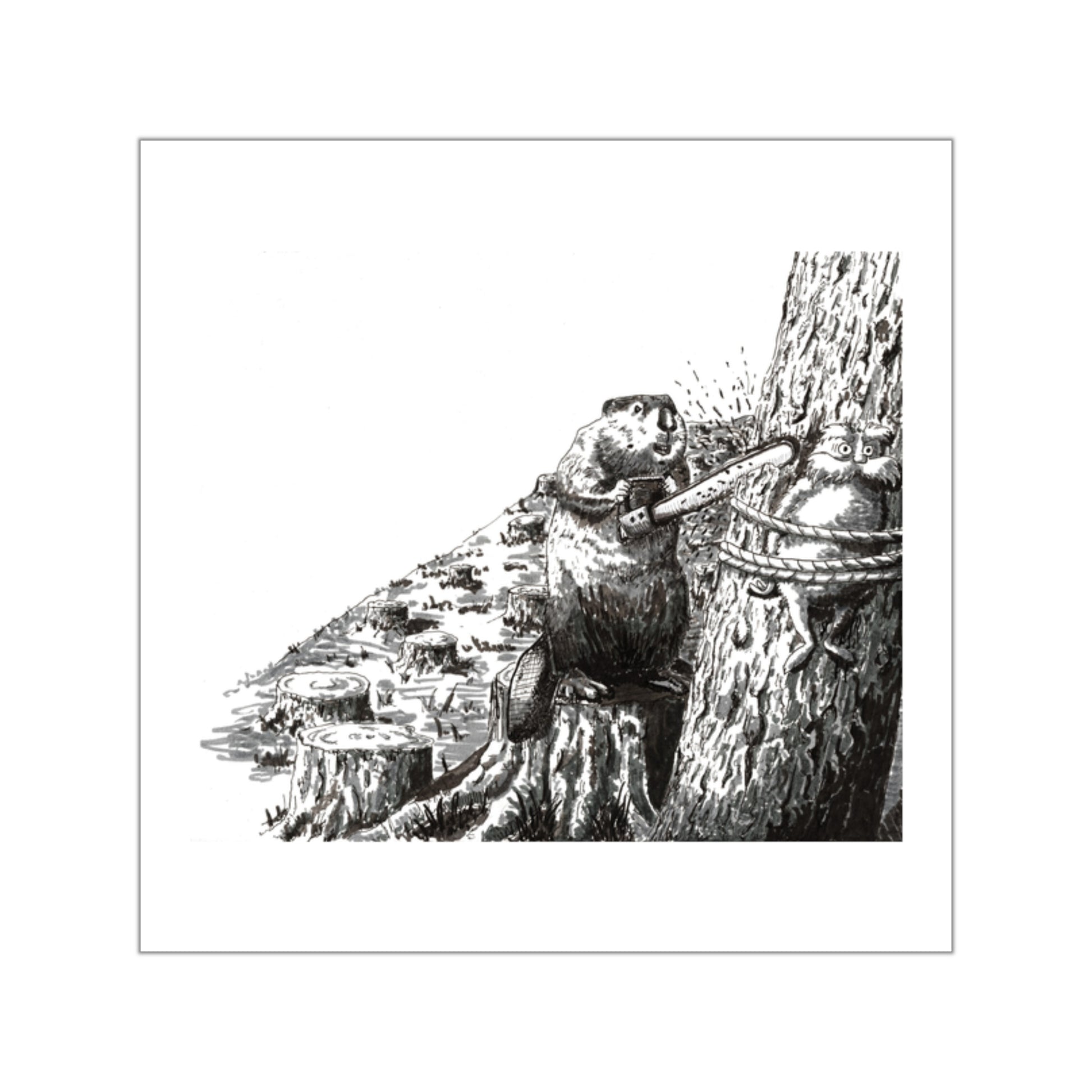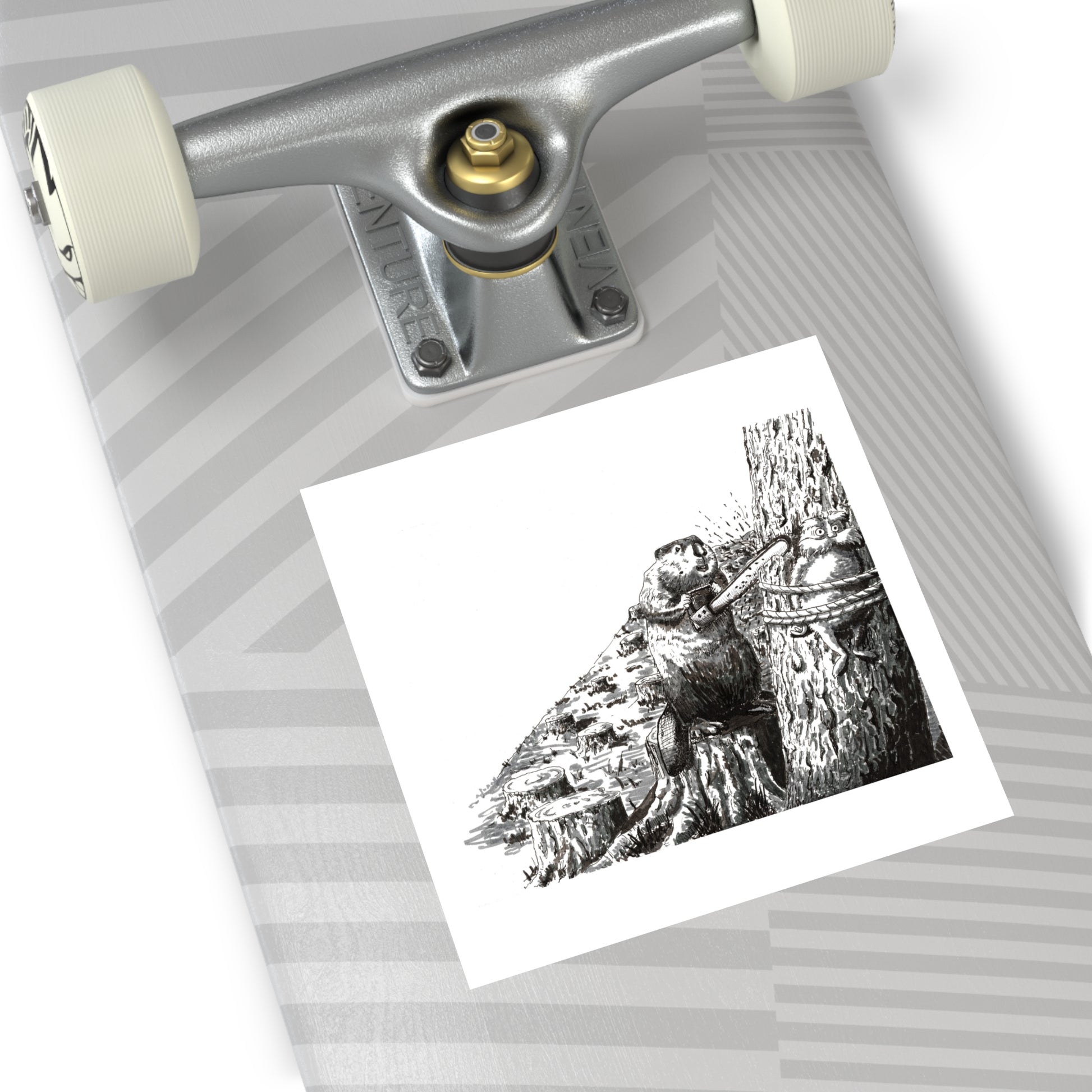 A beaver abuses his above-average technical know-how. On the back is the sticky part.