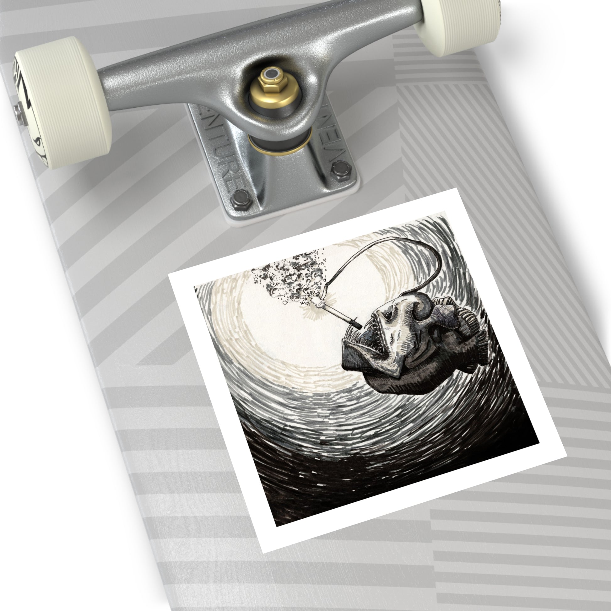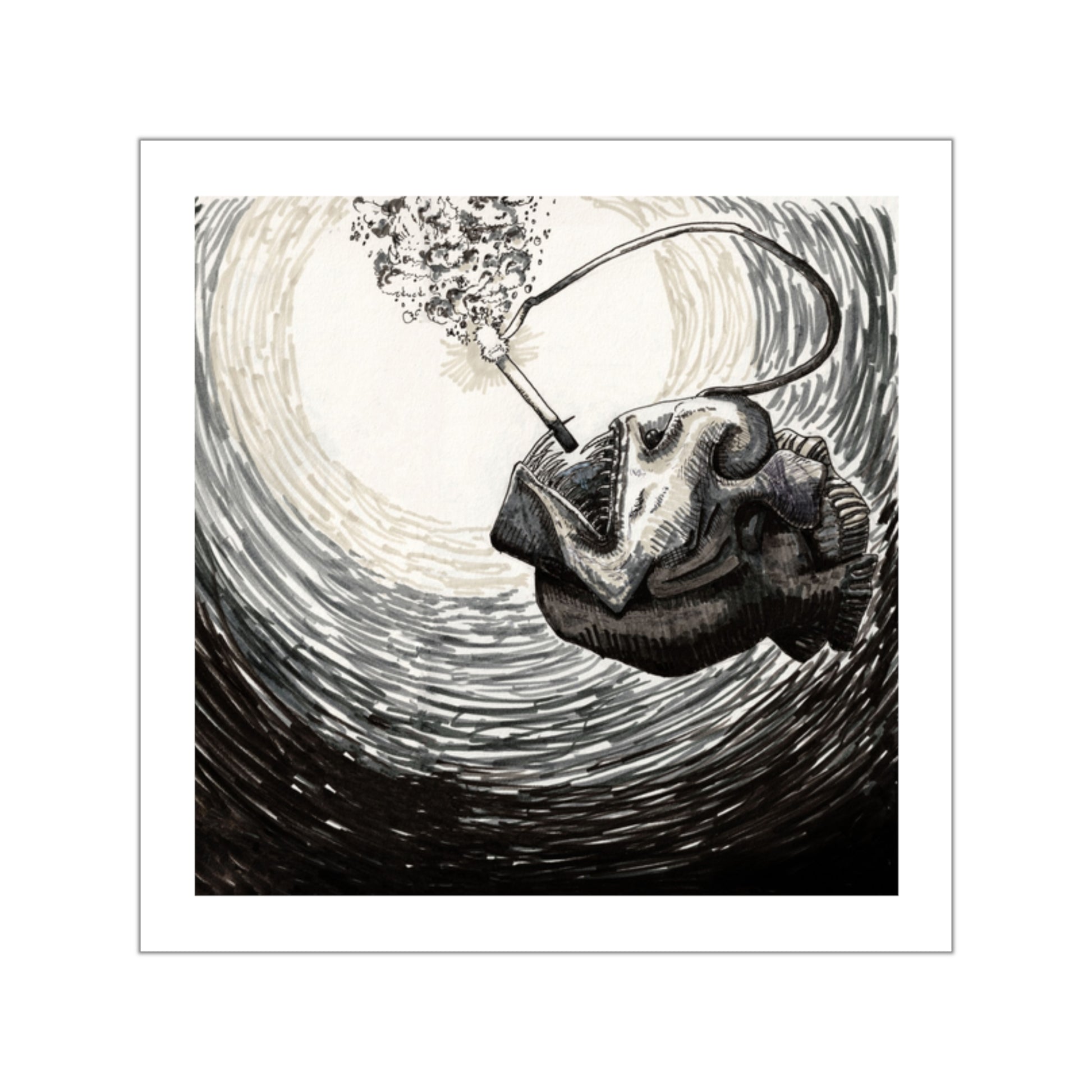An angler fish lights up a dart deep below the surface with his head-zippo. On the back is the sticky part.