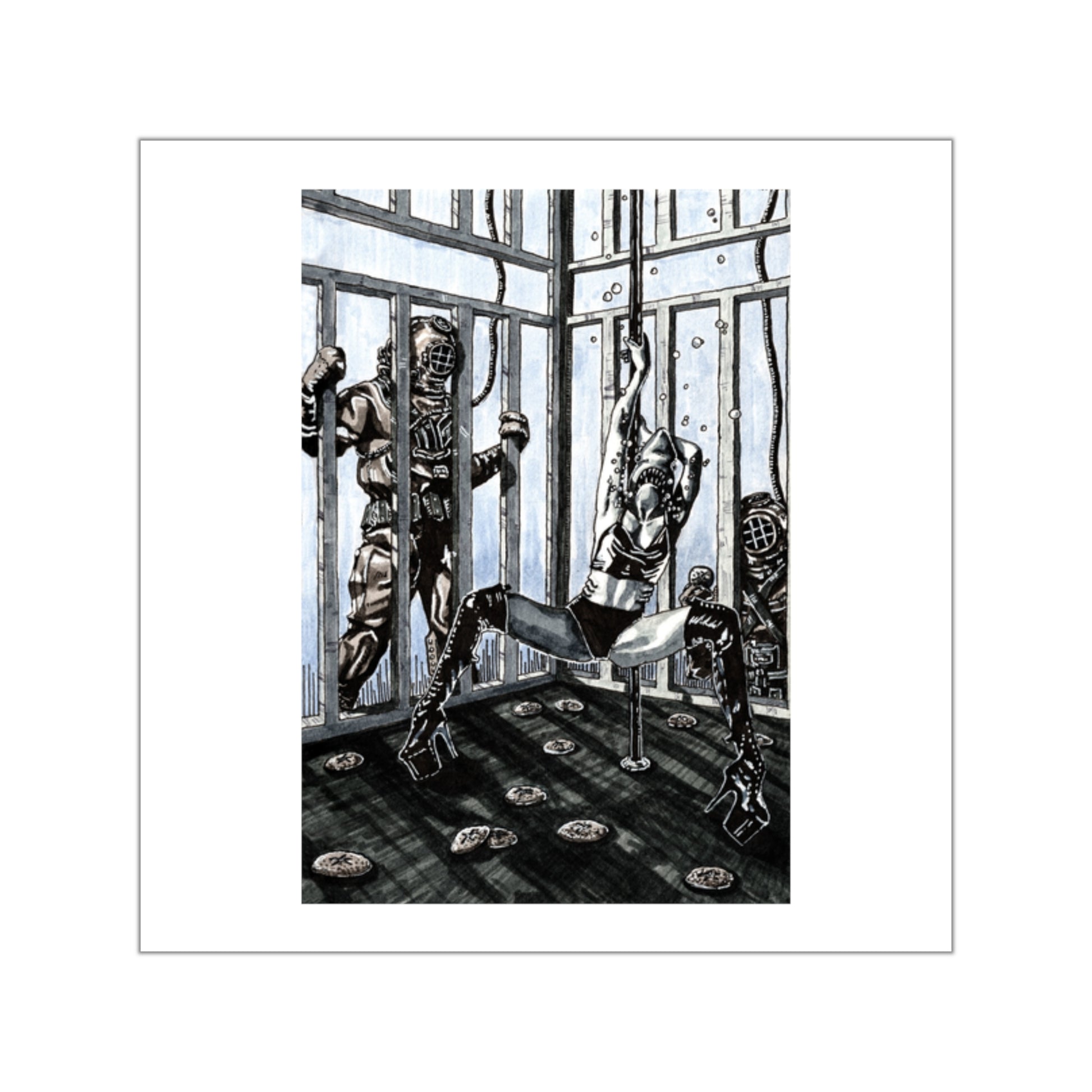 A sexy shark does what she does best - dance for those sand dollars. On the back is the sticky part.