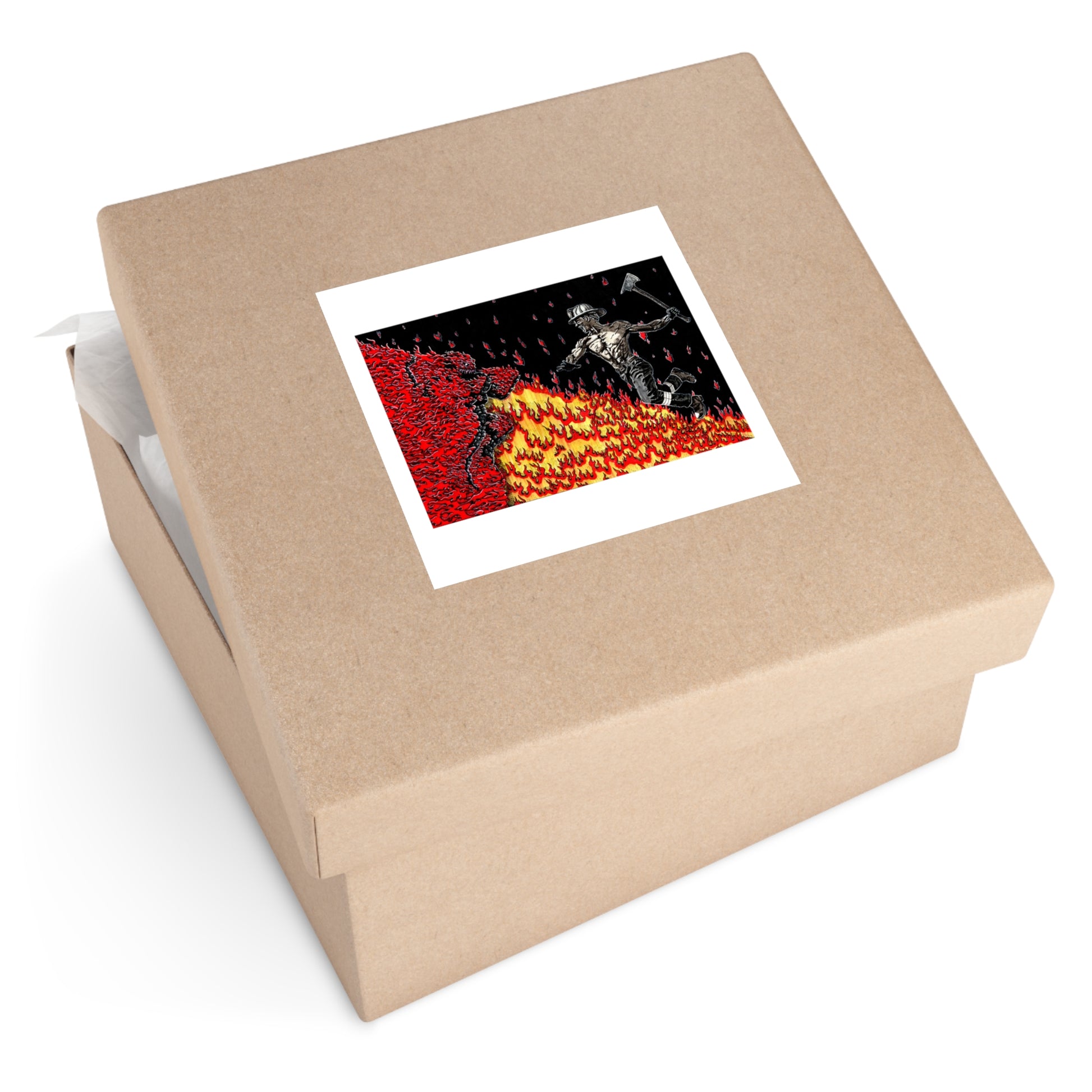 Fight fire with fire? No, fight fire with an axe and cheesegrater abs. On the back is the sticky part.